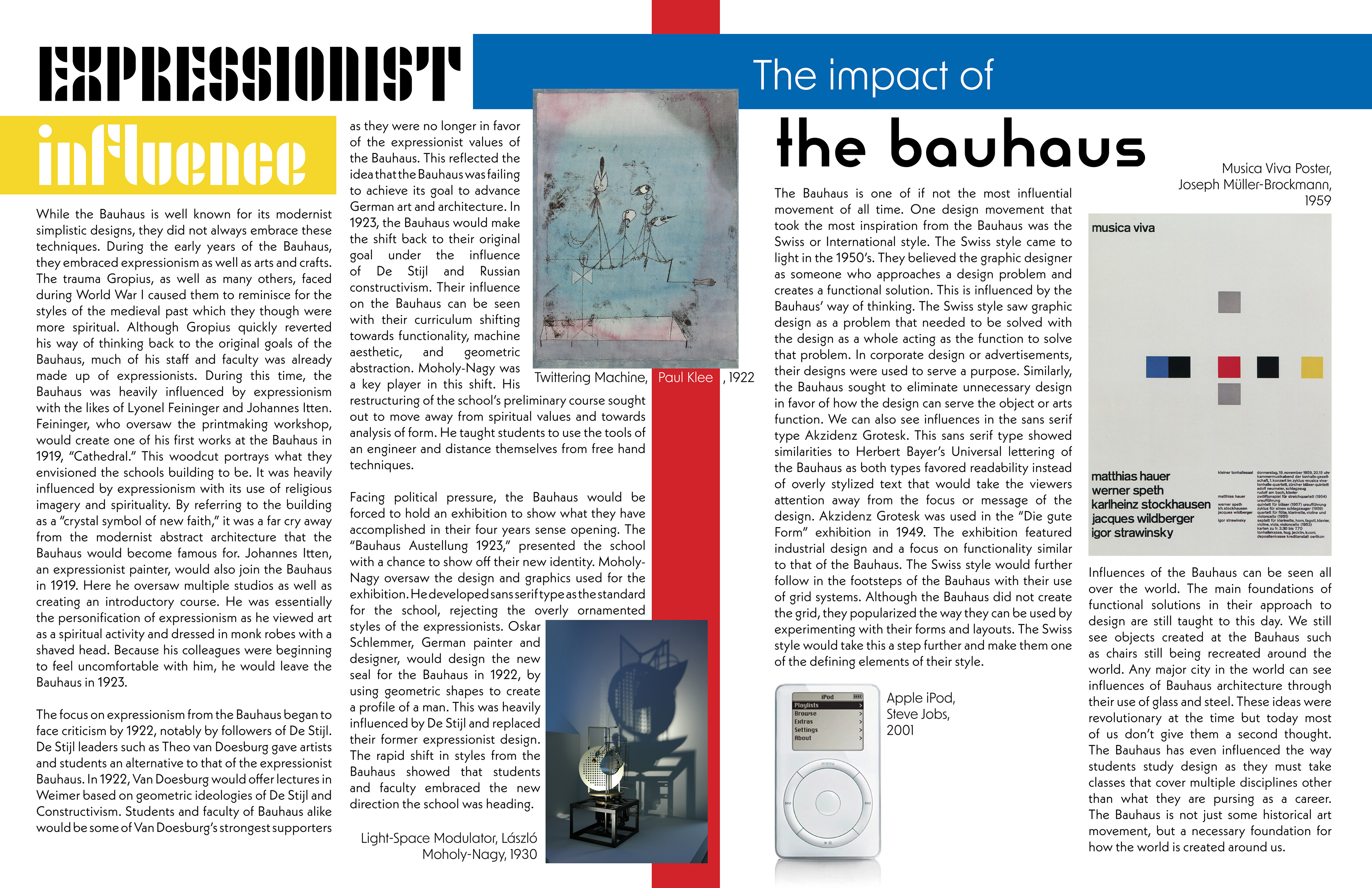 Final paper for History of Graphic Design covering the main figures and influences of the Bauhaus school and movement